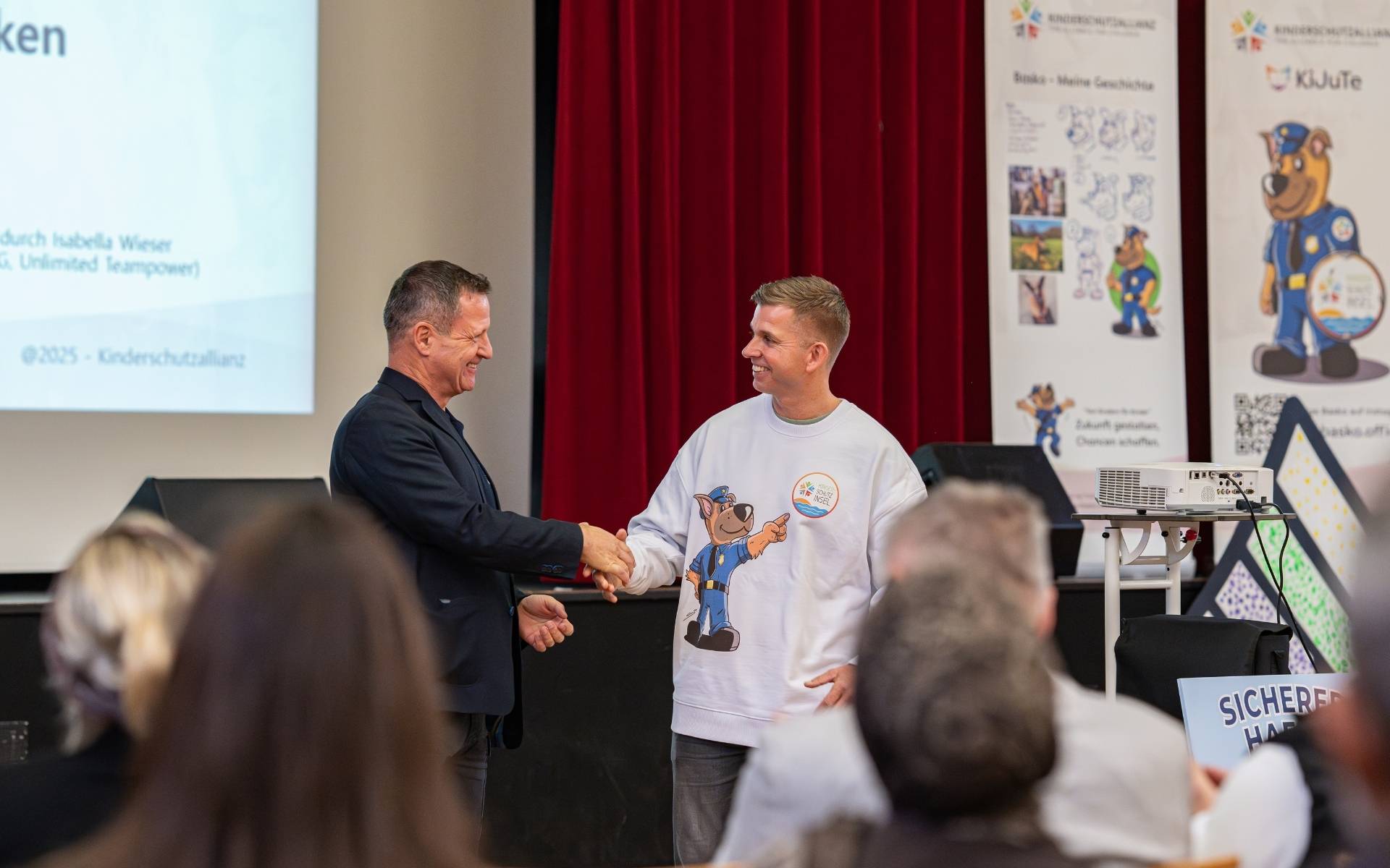 Die Kinderschutzallianz ist die offizielle Initiative des Niedersächsischen Ministeriums für Inneres, Sport und Digitalisierung und trägt das bundesweite Projekt der Kinder:Schutzinseln. Wir, die KiJuTe gUG, sind der gemeinnützige, pädagogische Arm dieser Allianz. Das bedeutet: Wir entwickeln neue Konzepte (wie den „Sicheren Hafen“), führen die Schulungen durch und sorgen dafür, dass die Projekte an Schulen, Kitas und Vereinen praktisch umgesetzt werden.